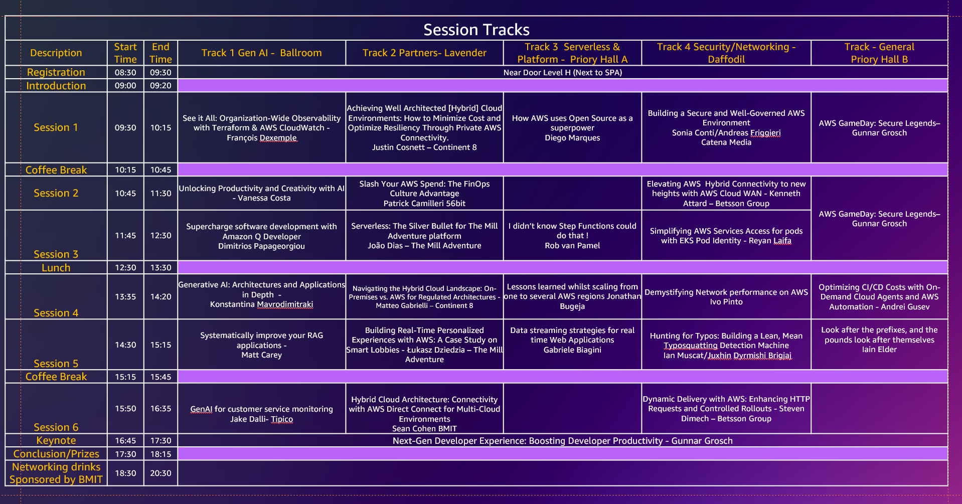 Agenda for AWS Community Day Malta, packed with insightful sessions and activities.